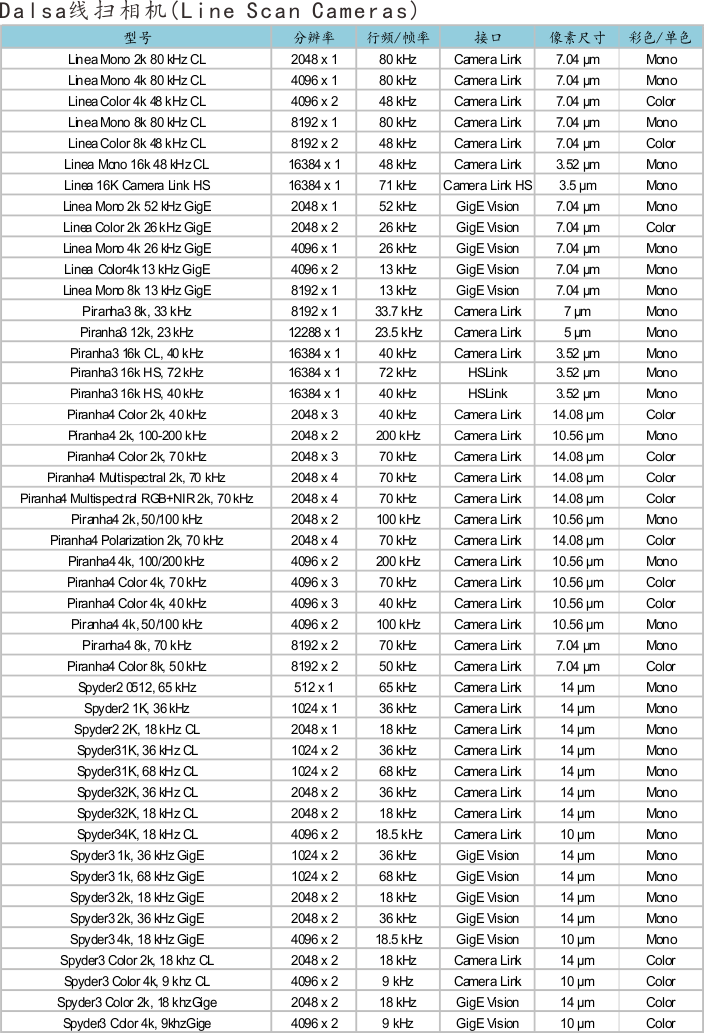 Dalsa线扫相机(Line Scan Cameras)